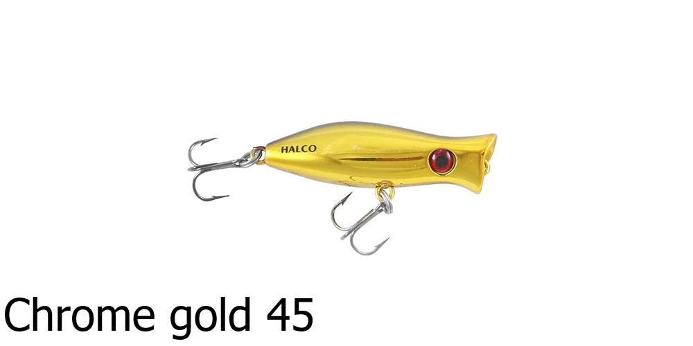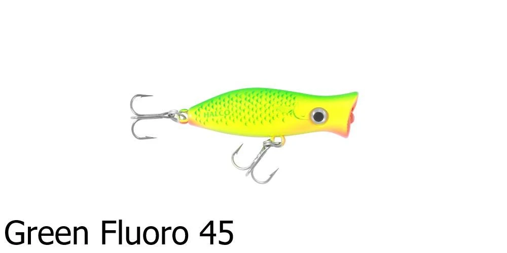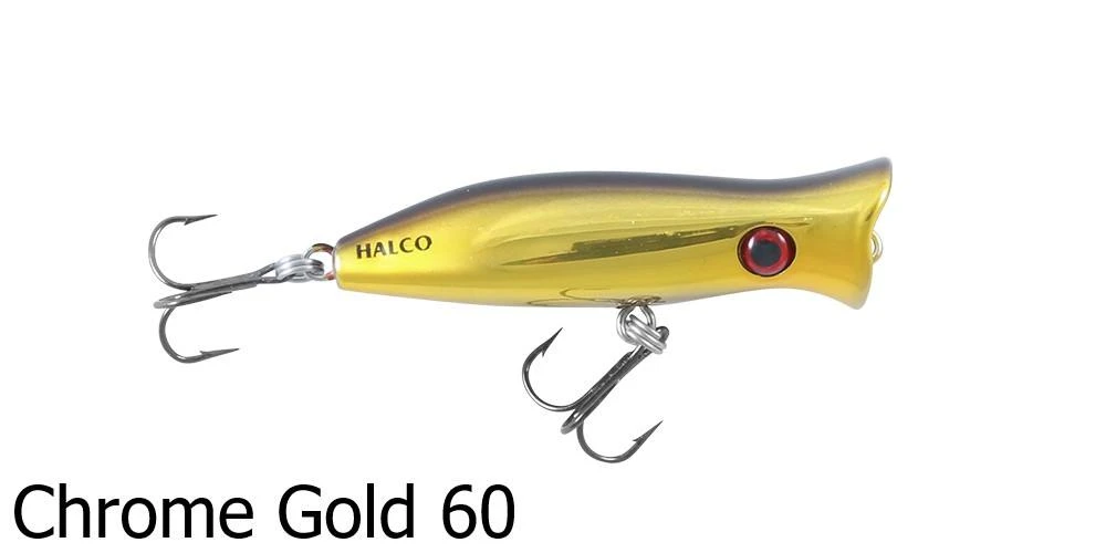 The Halco Roosta Popper 105 Lure is a surface popper and blooper. Catch big salt water fish with this surface popping lure as it splashes about attracting nearby fish. By changing the height of your rod tip, you are able to change how the lure responds and swims underwater – a rod tip closer to the water surface produces a stronger bubble action and is ideal in rough conditions or strong winds.