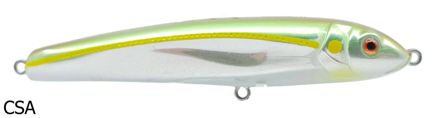 The 95 Riptide has had the body shape “fattened” up to create the ultimate surface walk the dog style lure and to create a lure that will nearly turn 180 degrees on itself on the surface when twitched. The internal rattle combined with the seductive walk the dog action when twitched across the surface make this lure deadly on species like barramundi, Murray Cod, jacks, queenfish, kingfish and a variety of reef species.