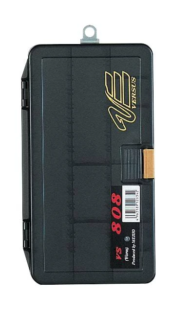 Securely store your fishing tackle with the Meiho Versus VS-808 plastic utility case. This 8 inch, worm style, plastic case comes with 6 removable plastic dividers and 3 fixed dividers for a whole bunch of different compartment sizes possibilities for your tackle. With this, The VS-808 has an attached plastic lid with strong latch closure to ensure your fishing tackle and supplies stay inside the case during transport. This case is made from a strong polypropylene plastic in a translucent black color.